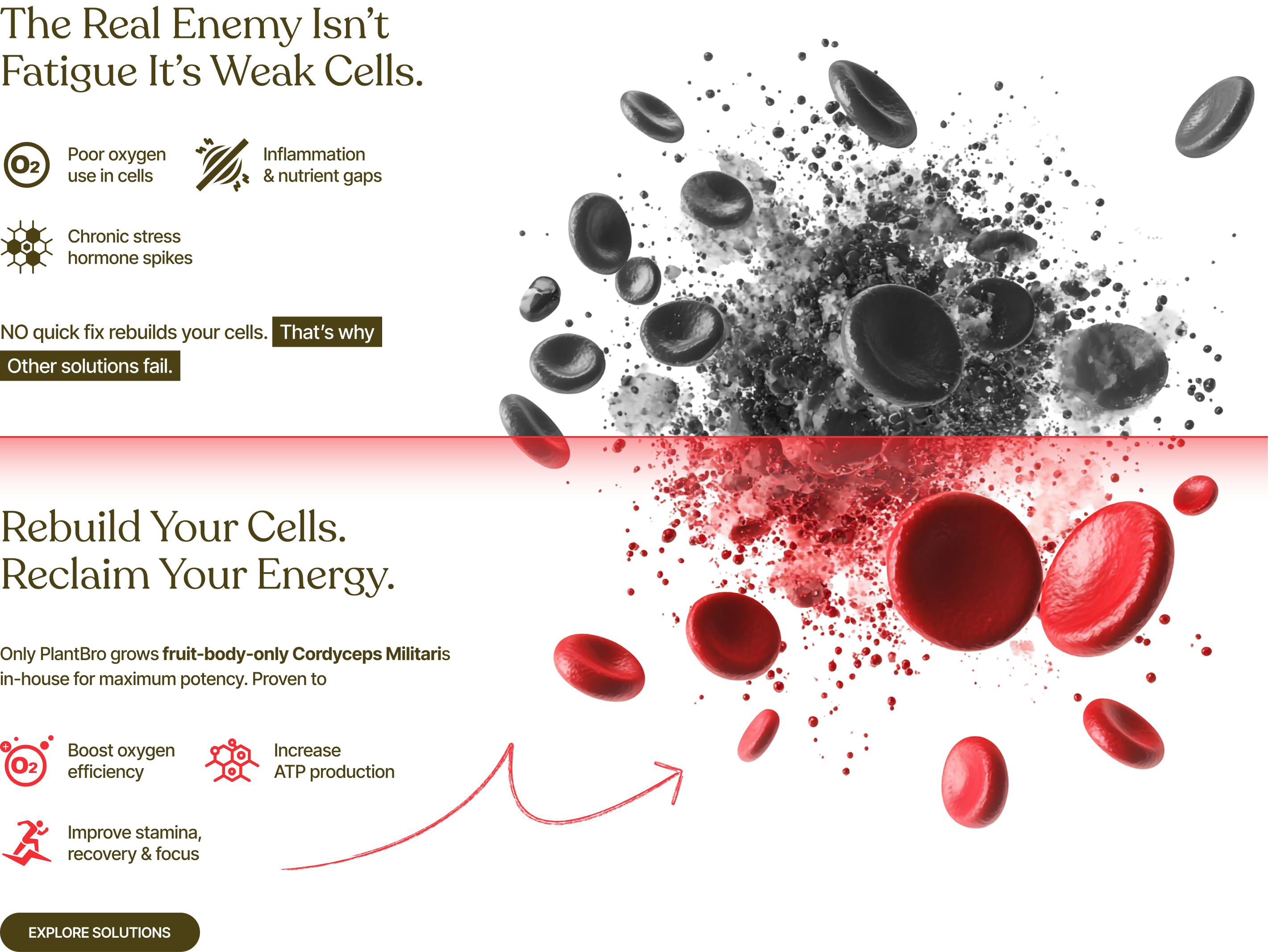 9 out of 10 people start their day already in an energy deficit. Caffeine hides it. Sugar spikes it. Only fixing your cells ends it.